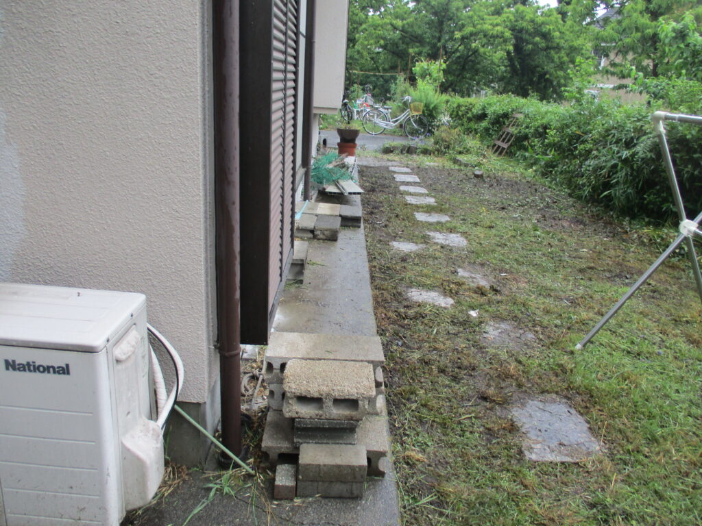 このテープが、ウッドデッキの陣地。