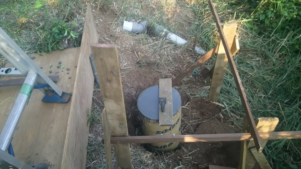 基礎は、地耐力の出る層まで単管を打ち込み、ボイド基礎。とにかく深く深く