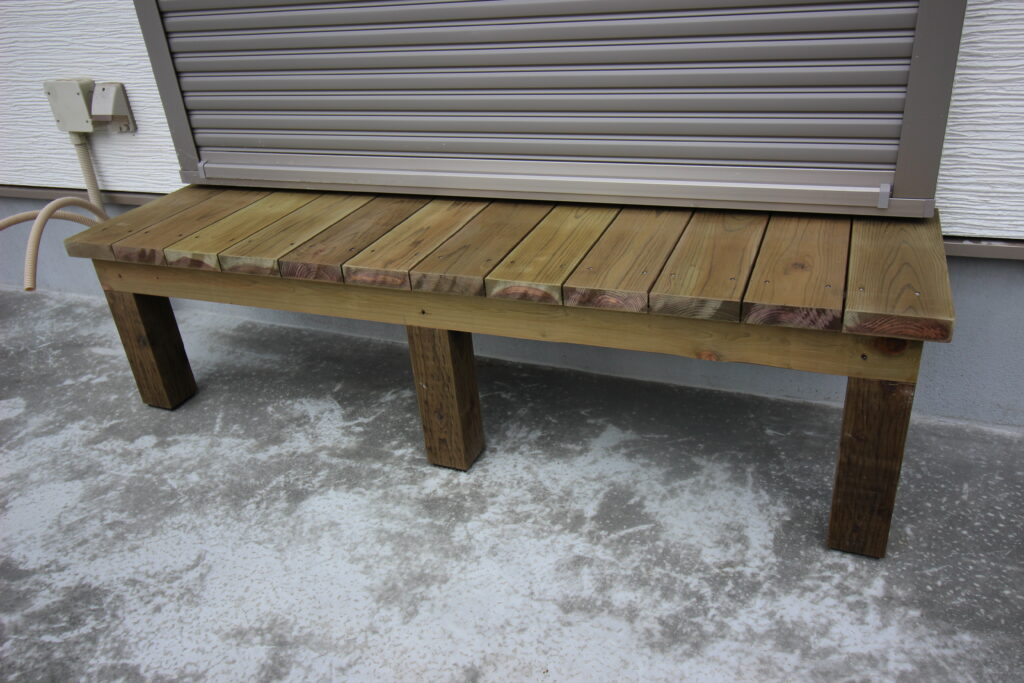 急傾斜のウッドデッキでの基礎とは変えています。でも傾斜してますが。