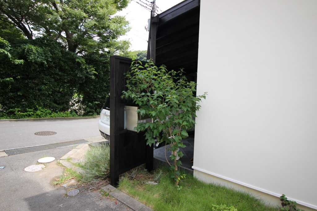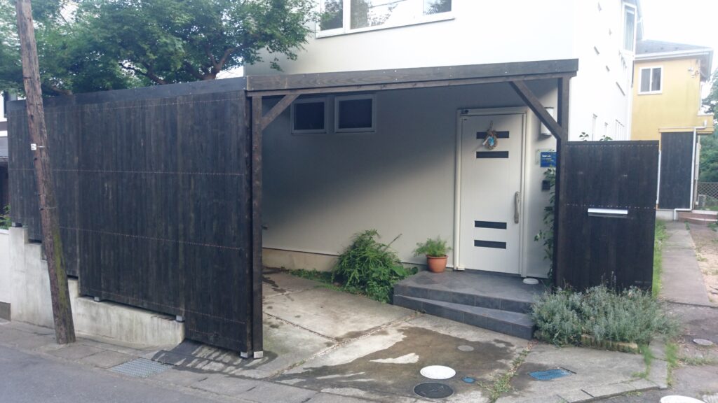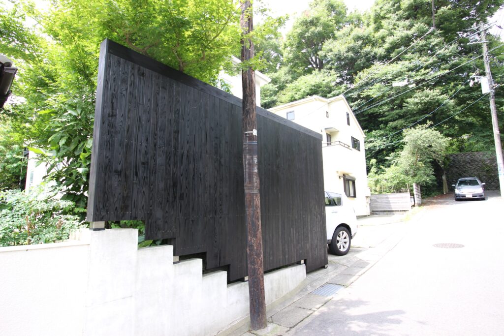 横から見ると、古都の景色を想起させるウッドフェンスのようにみえます