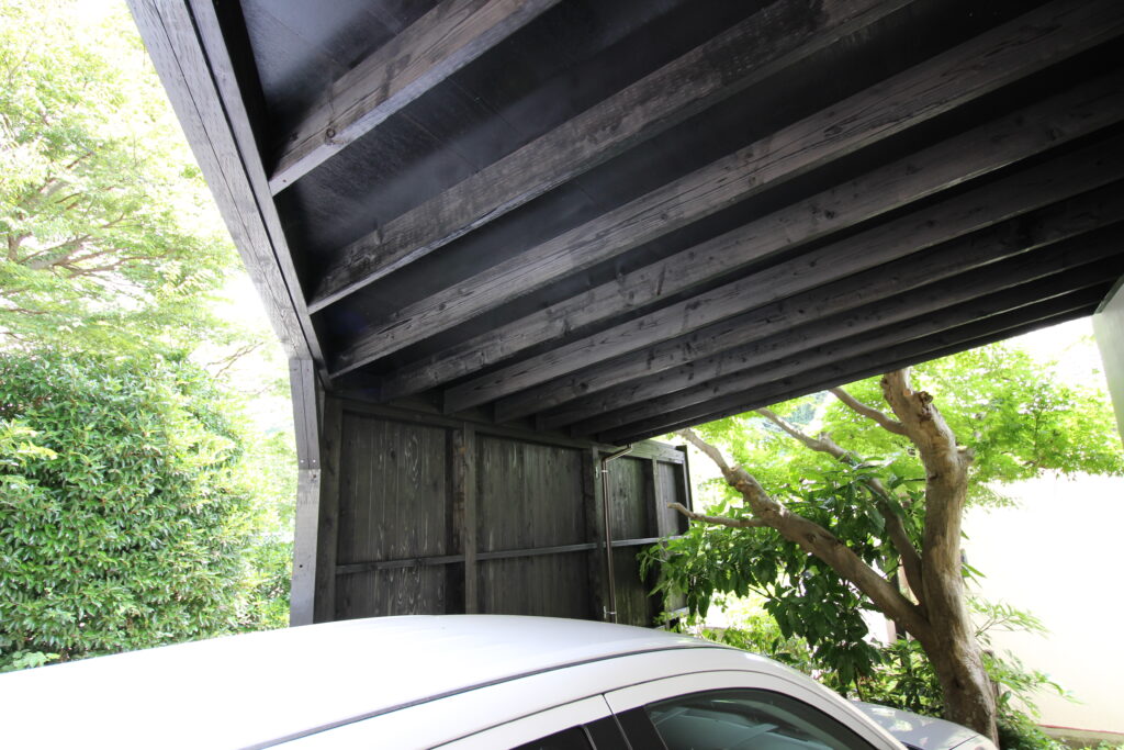屋根もすべて高耐久処理の特許材LBウッド、上はウッドデッキじゃなく純粋に屋根材として使われました