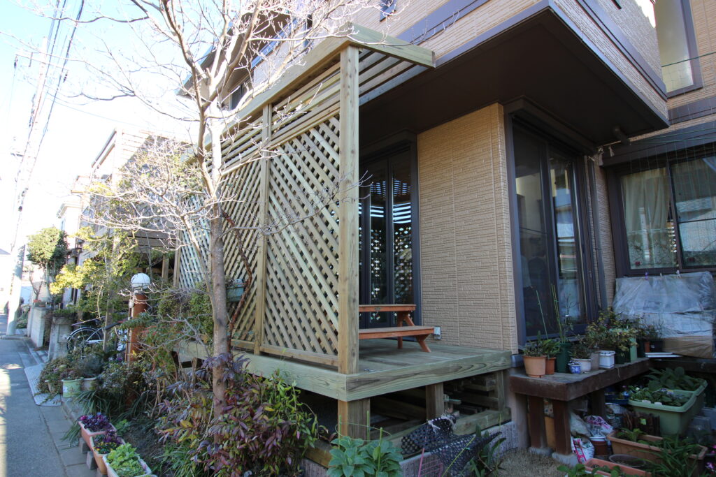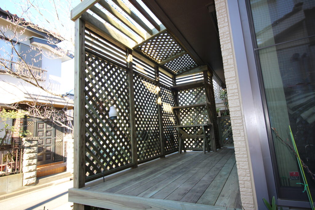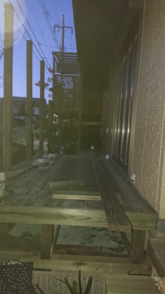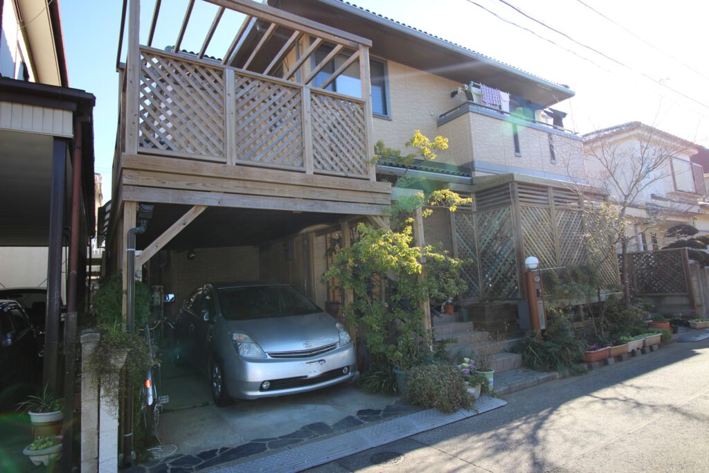 以前作らせていただいた車庫上デッキ(ガレージデッキ)の下で、遅起きの車、眠ってた