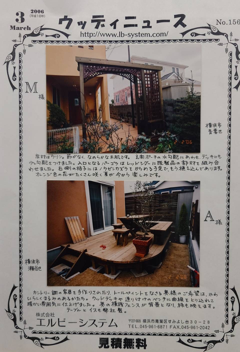 完成写真のアーカイブ集(2006年・3月)・・横浜市青葉区の玄関前パーゴラと横浜市瀬谷区の曲線ウッドデッキ