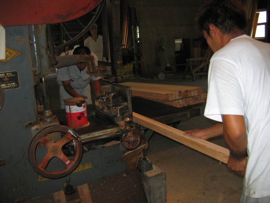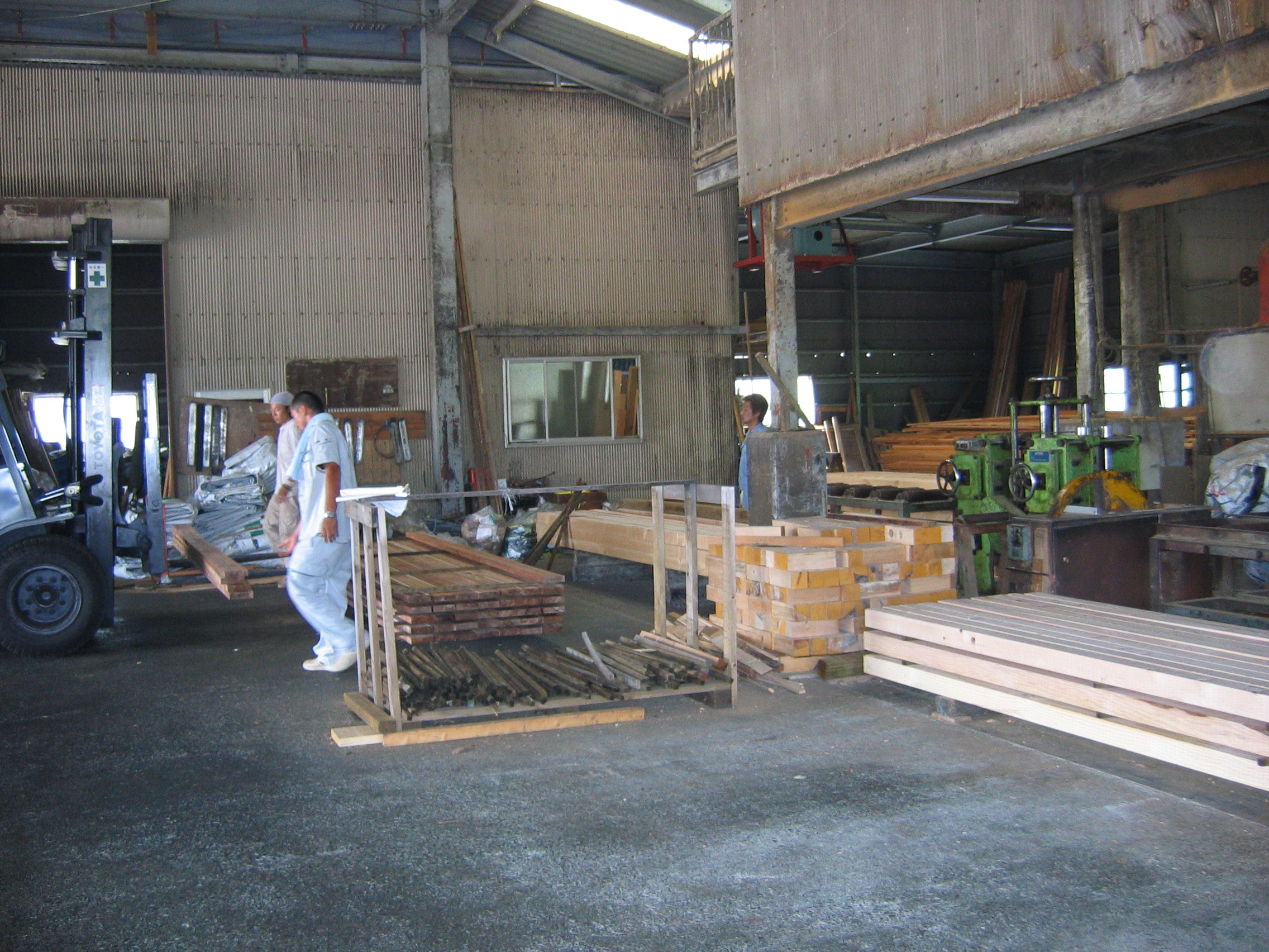 その際、実際の材木屋があるので、そこで工場の作業を経験させ材木の加工の経験もしてもらいました。(私自身がここで耐久処理の作業、木材の加工の作業をして、実体験の重要さをしみじみ体に覚えさせてもらいましたが、材料をとことん知るには工場での作業が重要でした)