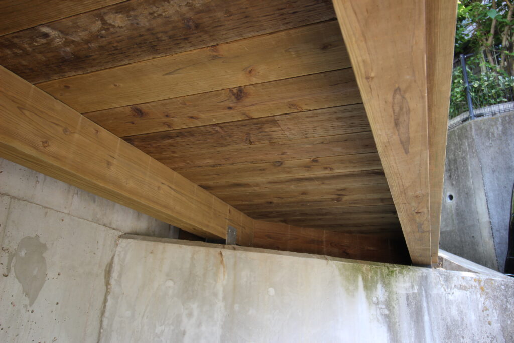 渡す際の桁も、荷重をかけても大丈夫な断面寸法で作ります。また直接コンクリート部分と接する場所はスペーサーをいれて、結露を防ぎます