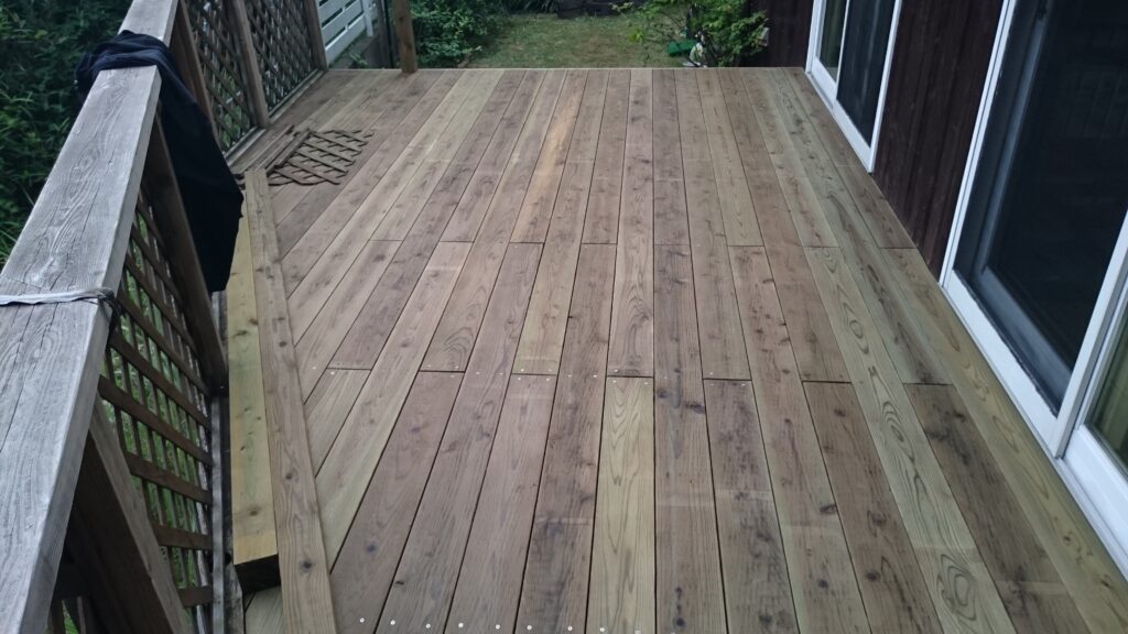 フェンスの桟は、たぶん以前、カナダで生産されてたラティスフェンスの3x6判(ウェスタンレッドシダー材)でしっかりしていて使いまわせました。