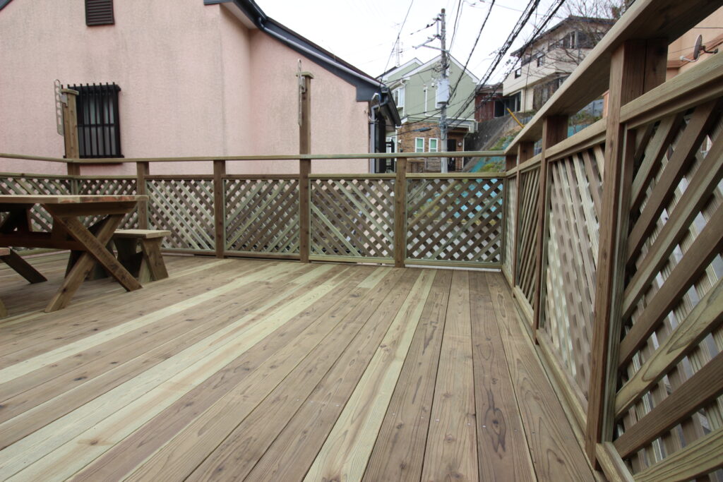交通の便がよい場所で、オーナーチェンジで建て直されて・・・横浜市保土ヶ谷区でLBウッドの高耐久処理、車庫上ウッドデッキ(ガレージデッキ) ガレージデッキ X Facebook はてブ LINE コピー 2026.01.15 ほとんど、ウッドデッキの形式は20年ほど前と同じ。 以前はできるだけ高さを高く!とおっしゃられて、屋根をつけなかったのですが それに、前回はオール木造。 今回は鉄骨構造+LBウッドに エルビーシステム ウッドデッキのお役立ちコラムデッキ一筋30年、代表太田が一所懸命執筆中!