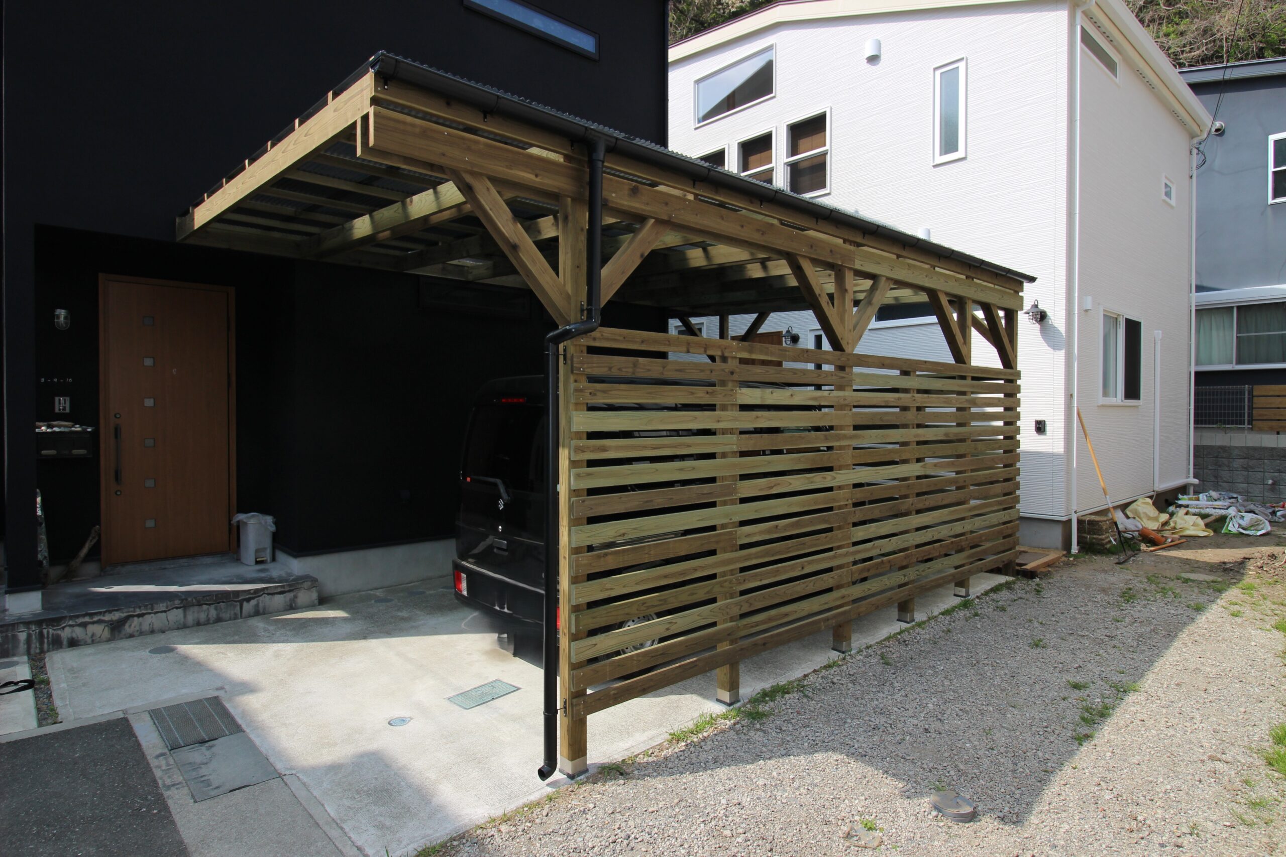 ガレージの奥も少しだけ屋根をつけて、ガレージにも雨にうたれないでもいけるのです