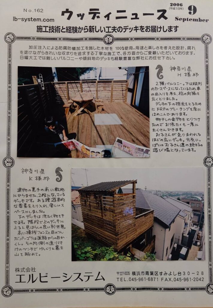 完成写真のアーカイブ集(2006年・9月)・・藤沢市の木製バルコニー(採光スペース)、青葉区の擁壁ウッドデッキ(木製小屋付き)