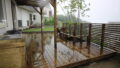 小江戸の川越、屋根のついたパーゴラができたばかり、♪こちゃえ~こちゃえ~♪・・雨降りでも庭で物思いか、はたまたLBウッド端材で日曜大工も