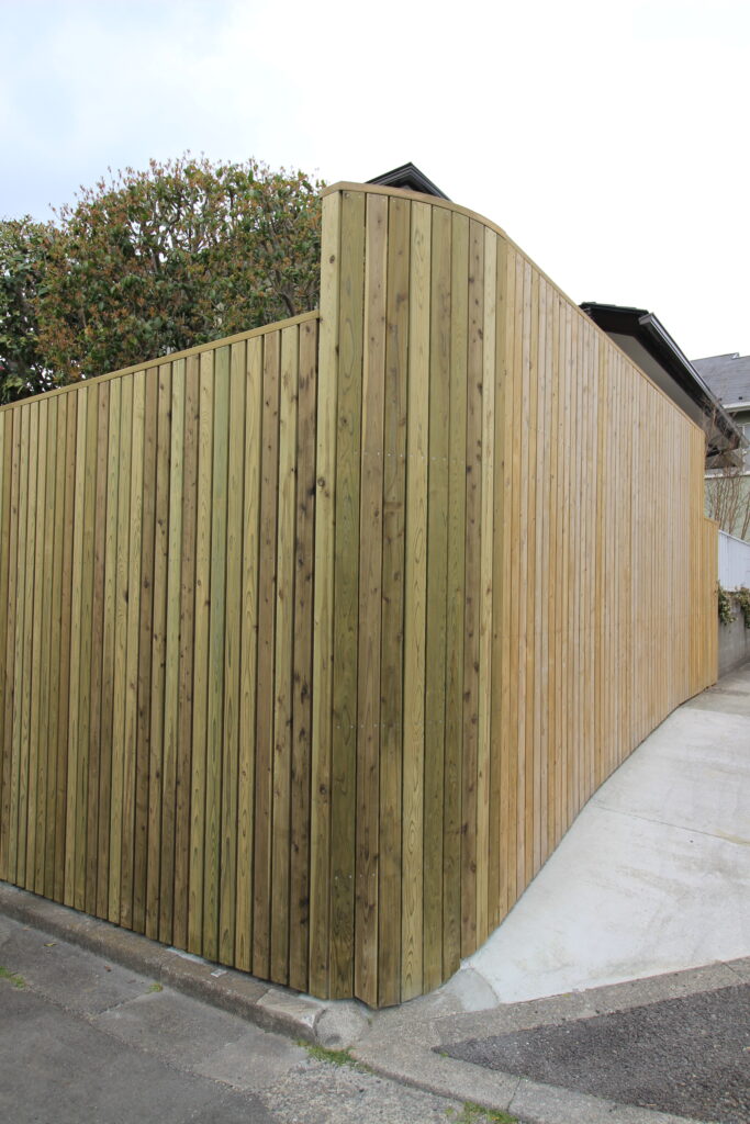 フェンスの桟の高低差は通る人の視線を考えて。