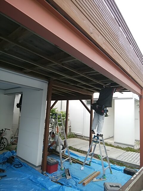 ほぼ最後の工事で屋根をつける下地工事。どこまで行っても事前準備が重要で、様々な取り合いを考えておかないとミスがで、お客様のご要望を実現できないことがあります。