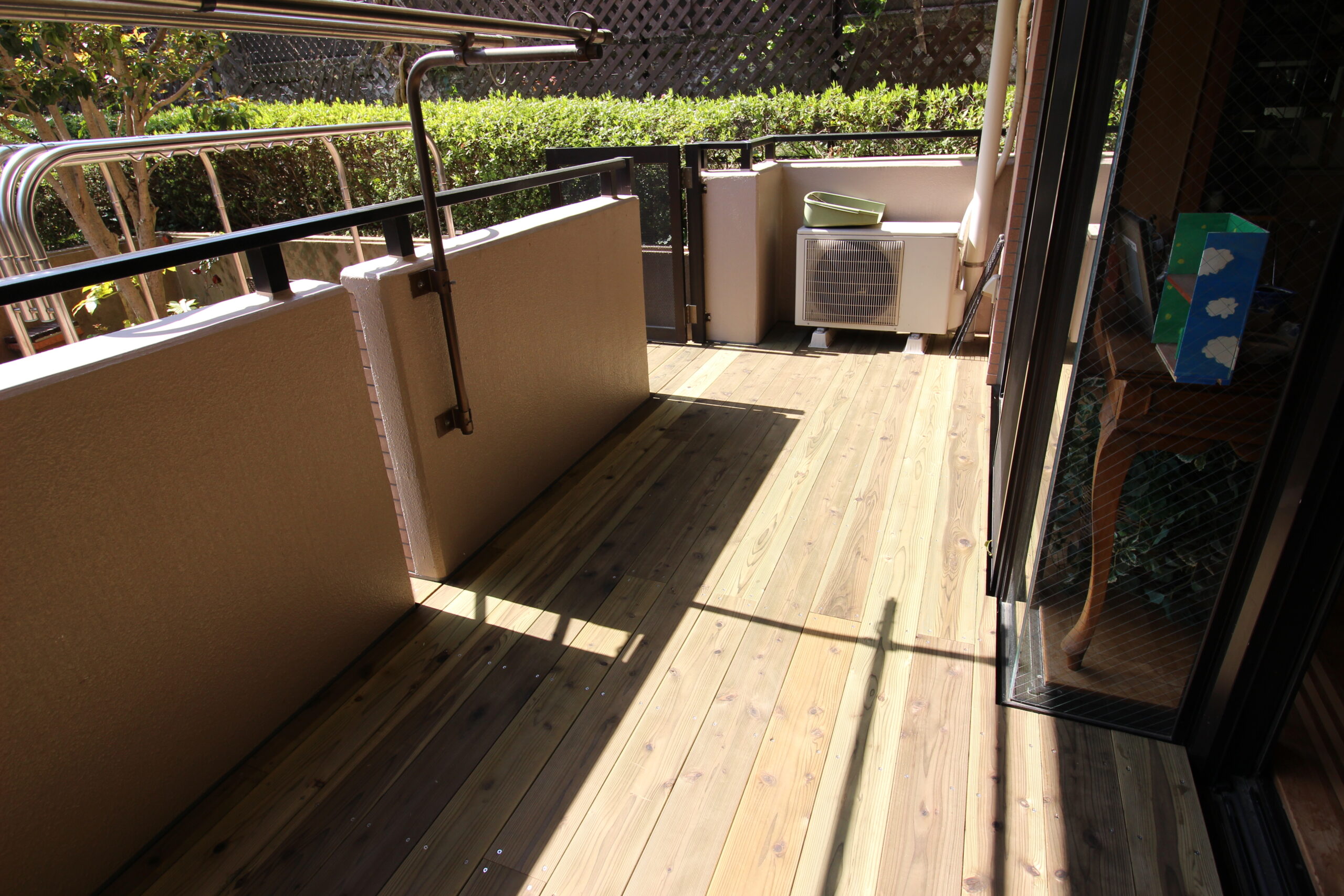 このウッドデッキの下には防草シートが敷かれ水分が木に与える影響も少なく、この方法でも、腐朽確率は減らせるのです