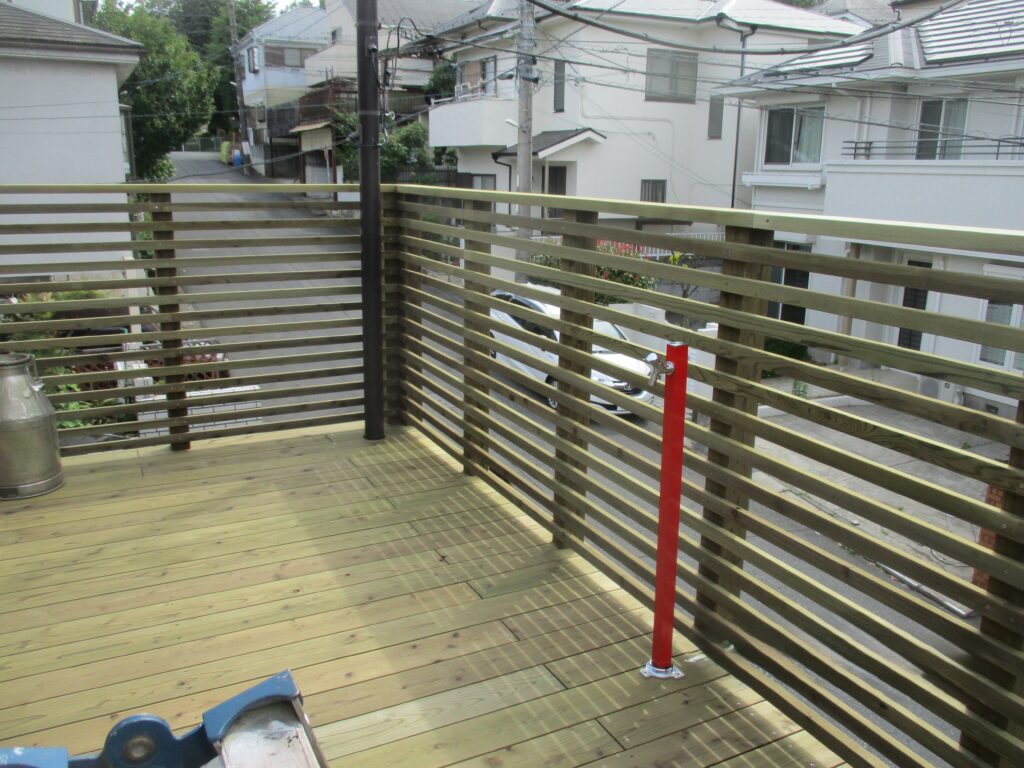 見上げるハイデッキ。フェンスの桟も少し空きを広げて通風を多めに