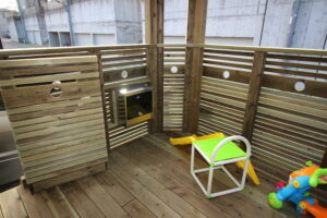 人工木には無い温かな質感のウッドデッキ(擁壁デッキ)でお子様ものびのび空間・・町田の住宅街で施工