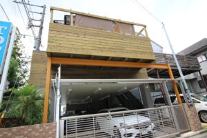 ここで鉄骨を躯体にしてウッドデッキを作ると出幅で2mほど、幅で7mほど生活空間が広がりました。