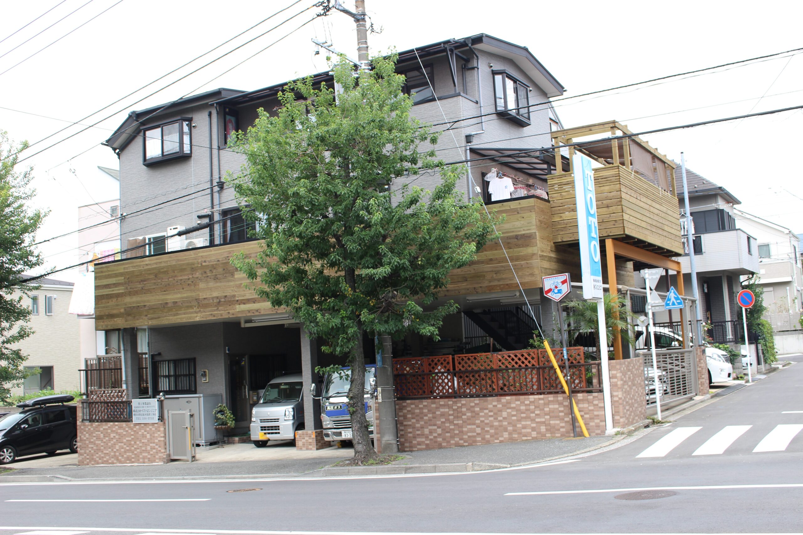 ウッドデッキ施工のエルビーシステムです、今回は横浜市港南区の鉄骨上のハイデッキ(木製バルコニー)のご紹介