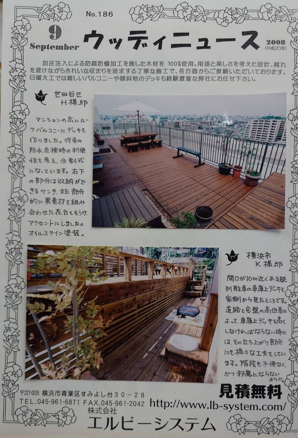 完成写真のアーカイブ集(2008年・9月)・・世田谷区の屋上バルコニー(ウッドデッキ)/横浜市旭区の車庫上デッキ(ガレージデッキ)