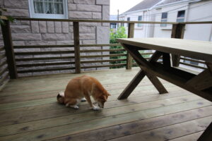 ペットの犬もこの木材の持つ断熱性を身をもって知ってるようで、すごしやすそうです