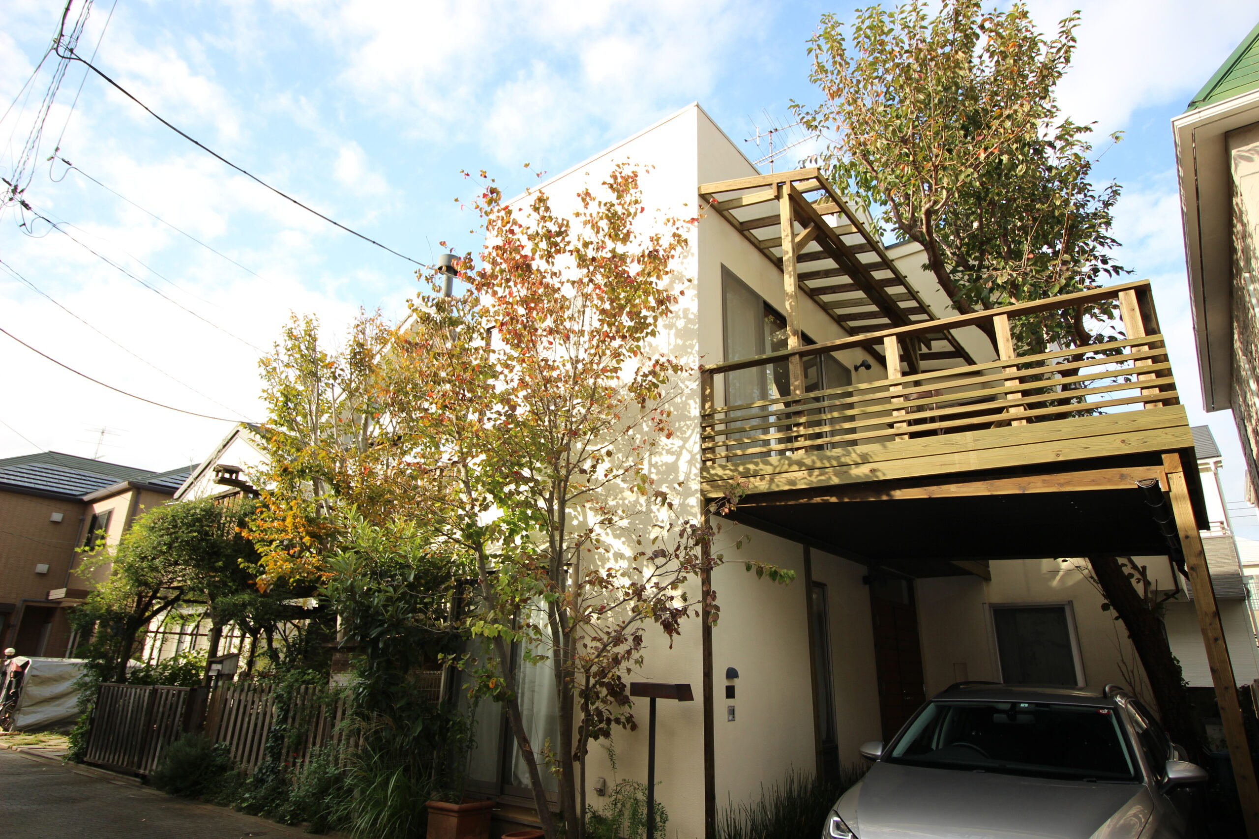 車庫上デッキでパーゴラ付きバルコニー。都市の景観にも合いそうです
