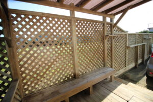 浜風を集める茅ヶ崎市のウッドフェンス、ウッドデッキ・・・最初の工事から25年ほど、ウッドエクステリアが3度の工事で変わっていきます