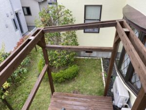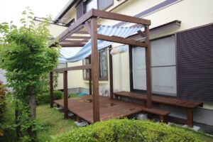 パーゴラを上から撮影。このウッドデッキへの直射を防ぎます