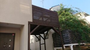閑静な住宅地にどっしりとした質感をもつ高耐久のLBウッドのハイデッキ
