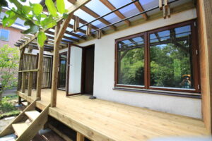木のサッシ枠とLBウッドの縦・横が”和”。