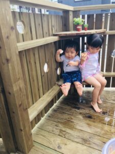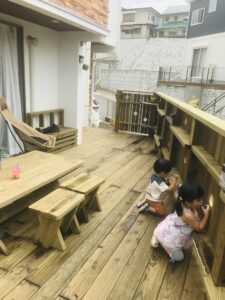お子様にも大人にもちょっと楽しいウッドデッキになってほしいです