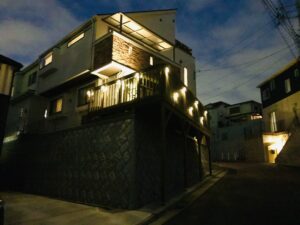 夜は明かりが漏れて、夕闇の中でもっと光を