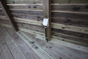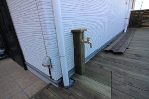 タープを引っ掛けるステンレスの金具も笠木に付けた