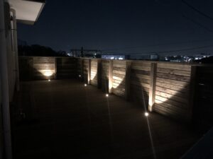 ウッドデッキには、ライトをうめこんで(弊社・社員職人により)
