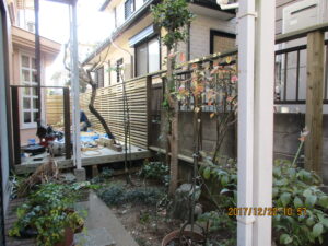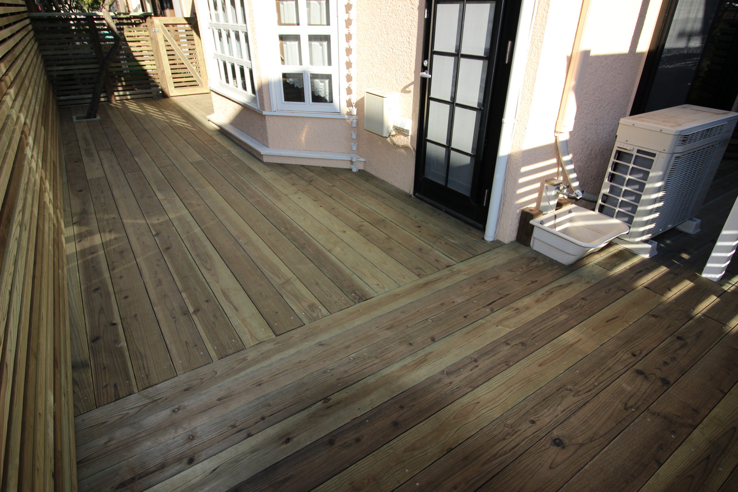 施工中のウッドデッキ、扉廻り