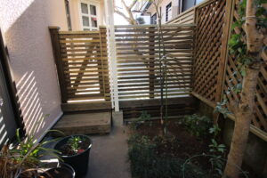 フェンスのボーダーの桟は、細く繊細なイメージに。かつ最低限の目隠しフェンスに。