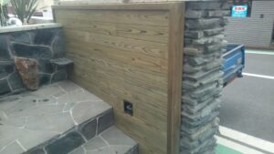 玄関回りもウッドの木の壁(ウッドウォール)を作って化粧