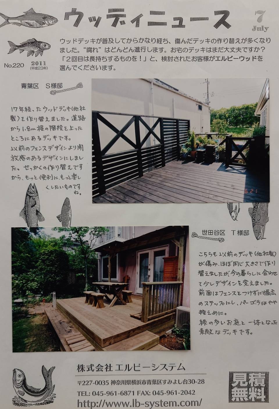 青葉区のウッドデッキの方は、LBウッドは、木製フェンスもデザインが自由で、過去の耐久処理方法より、更に耐久性があることをご説明して、納得いただき作らせて頂きました。