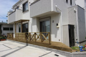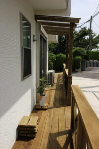 ウッドデッキは駐車場からの入口になってきます。