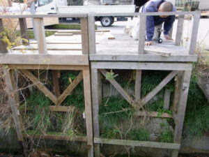 こちらは、LBウッドの方で、シリコンゴムが床材、大引きともについており、なおかつ、ACQ注入、DOT注入で同じ経過年数でも全くウッドデッキの挙動が違う。