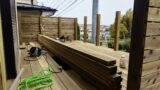 木製デッキと木製フェンス、木製扉。ナチュラル木目の高耐久処理国産木材のLBウッドで施工、川崎市麻生区