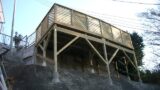 ウッドデッキは、座る生活が多いので、目隠しは多少低めで設定。