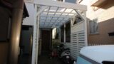 実は、ここのお宅には、1階にウッドデッキ、2階に木製ベランダ、そして2つの住居をつなぐように、パーゴラがあります。