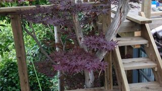 町田市 車庫の上デッキから二階のバルコニーへ繋がる、本物の木だからの素材がすっかり風景と統一感・・町田市 本物の木であり、特に高耐久の処理の特許を持った国産材(LBウッド)だから耐久性をありながら、オリジナルなデザインもOK.塗る必要もありません。そんなナチュラルな素材だから、お家の樹木にも合い、風景も壊しません。普通の木や塗っただけの木だと長... 2025.11.20 町田市車庫上ウッドデッキ