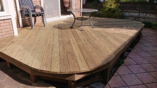 1階ウッドデッキ 特殊なデザインのウッドデッキを空から見下ろす・・横浜市栄区のエクステリア 一般的には、建物に垂直あるいは平行に貼る床材ですが45度に斜め貼りして中央で線対称に。そして角は曲線でゆるいRで納める。少し高いところから見下ろすとより美しい構図が現れる。デザインは自由だけれど、それはより使いやすいことを求めてのこと。形あ... 2025.11.21 デザインナチュラル横浜市栄区1階ウッドデッキ