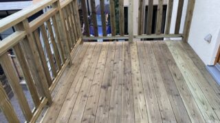 ウッドデッキ工事(施工) エルビーシステム作成のLBウッドの広めの木製バルコニー・・・埼玉県川口市で、車庫上デッキでもあり すべて、自社の社員が施工。外から施工できます。梯子を使って施工。この下に車が入りますLBウッドは「加工しやすい国産材 × 高耐久処理」のハイブリッドハードウッドの弱点(加工しにくい)と、国産材の弱点(耐久性が低い)を同時に解消した素材だから... 2026.02.26 ウッドデッキ工事(施工)ガレージデッキナチュラル川口市木製バルコニー自社職人車庫上ウッドデッキ