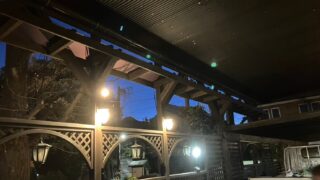 ウッドデッキ工事(施工) 川崎市麻生区で、ハイデッキの下にLBウッドのカーポート、照明器具のマリンランプも取りつけて 上に造ったウッドデッキ(ベランダデッキ)に屋根をつけて、下がカーポートに。夜のライトは、光るだけでなく感傷も引き起こす 2026.03.22 おしゃれウッドデッキ工事(施工)ガレージデッキデザインナチュラル川崎市麻生区木製バルコニー車庫上ウッドデッキ