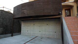 ガレージデッキ 多角形でなめらかに滑る車庫上ウッドデッキ(ガレージデッキ)鉄骨躯体・・・座間市での施工 広い玄関の横から入りますもう一方の入り口。家の周り一周。フェンスが高く、かといって圧迫感はありません家の外観が深みを増します。鉄骨も、LBウッドも違う塗料ですが、同系色で一体感を持たせています。 2026.01.20 ガレージデッキ座間市車庫上ウッドデッキ
