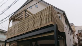 ウッドデッキ工事(施工) 千葉県市川市の2階ウッドバルコニー(木製テラス)兼車庫上デッキ兼屋根付きパーゴラの工夫 ポリカの屋根はすりガラス文様で、多少光を分散させる。屋根の根太から板を吊るしそこに開けた穴に物干し竿を透し、雨でも塗れない物干し場に。一番バルコニーに出入りするドアのある個所に、屋根付きパーゴラで濡れないで憩える空間少し。柱は右の端、左の端... 2026.04.29 お子さまの遊び場こどもの遊び場ウッドデッキ工事(施工)ナチュラルパーゴラ屋根付きパーゴラ(平板)市川市木製バルコニー木製フェンス、ウッドフェンス車庫上ウッドデッキ