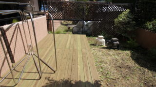 1階ウッドデッキ 横浜市青葉区のマンションの専用邸のウッドデッキ・・・居間から庭まで同じLBウッドの高耐久国産材で繋がった 土の庭の方は、ウッドデッキの下が地面とデッキと距離がない。湿気が上がること、雑草が生えることを避けるため防草シートを貼りました。LBウッドは、高耐久のソフトウッドなので、夏の熱さ、冬の冷えを断熱性能の良さでカバーしています。足もとも、硬すぎ... 2026.04.02 お子さまの遊び場こどもの遊び場ウッドデッキ工事(施工)ナチュラル横浜市青葉区1階ウッドデッキ