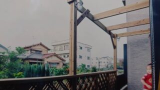 1階ウッドデッキ 江戸川区のパーゴラ付きウッドデッキは木製フェンスの二重ラティスにしています 井桁の模様を45度傾けて、和風とも洋風ともとらえられるデザインに。パーゴラの柱に、マリンランプを取り付けて。夜のウッドデッキでも、明るくお子さんが一番うれしい、住まいながらのアウトドアライフ 2026.04.19 お子さまの遊び場こどもの遊び場ウッドデッキのディテールウッドデッキ工事(施工)ウッドフェンス(木製フェンス)パーゴラ木製フェンス、ウッドフェンス江戸川区自社職人1階ウッドデッキ
