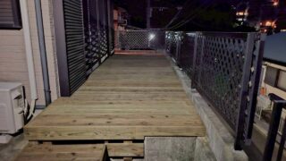 1階ウッドデッキ 足柄下郡湯河原町の高低差のあるウッドデッキの施工 もともと、ウッドデッキのあった場所。古いデッキを解体した後、全面を新規のLBウッドのデッキで敷き詰める工事です。湯の街湯河原町の日暮れ。早朝から解体から始め、終わるころには日が傾いて。デッキの下はコンクリートですから、下に雑草が生えている土... 2026.04.25 ウッドデッキ工事(施工)ナチュラル湯河原町自社職人1階ウッドデッキ